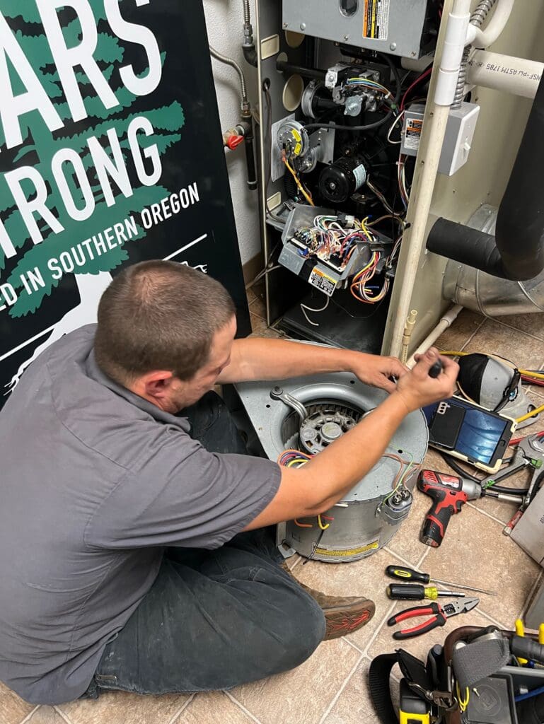 Changing out a blower motor. if a blower motor goes out not obly do you lose the air circulation but you also lose the ability for your system to cool because without the air flow your evaporator coil will freeze over creating strain on the compressor potentially ruining it but it can hit a high pressure in limit and turn off. Airflow is critical for proper hvac operation.