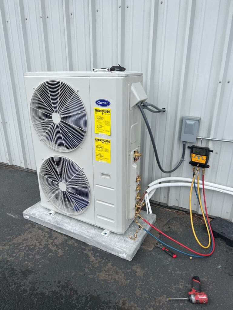 Installation of a new Carrier ductless system with 3 high wall heads. This system has the capacity for an additional 2 units should the owner want to add more in the future.