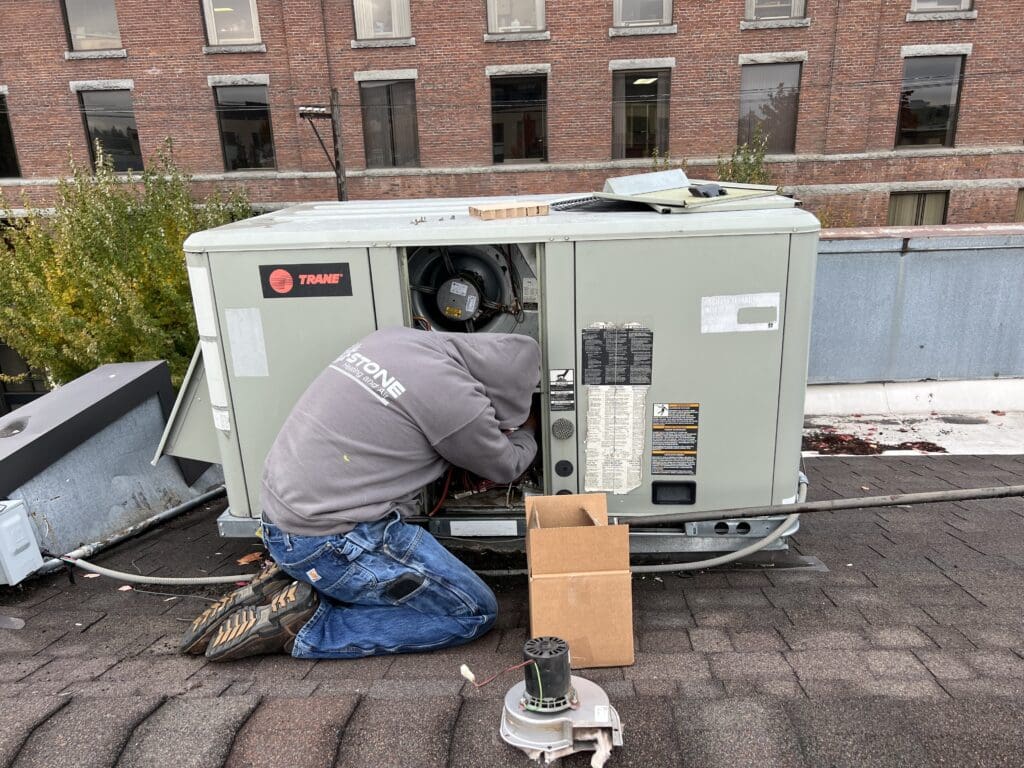 Performing routine maintenance on this commercial system.
