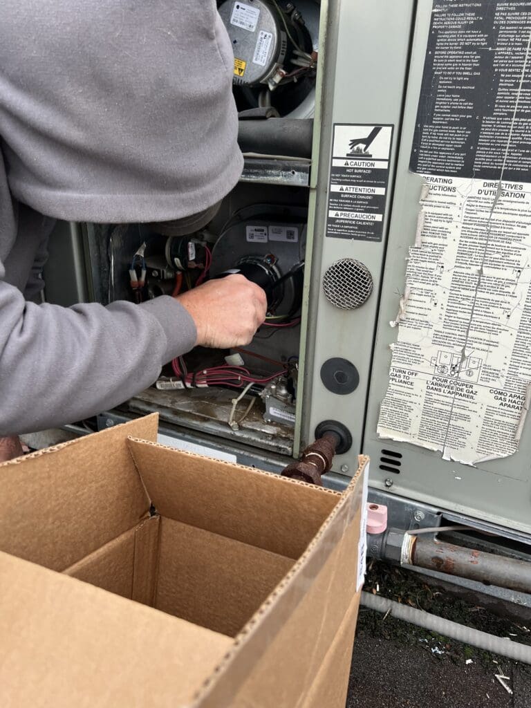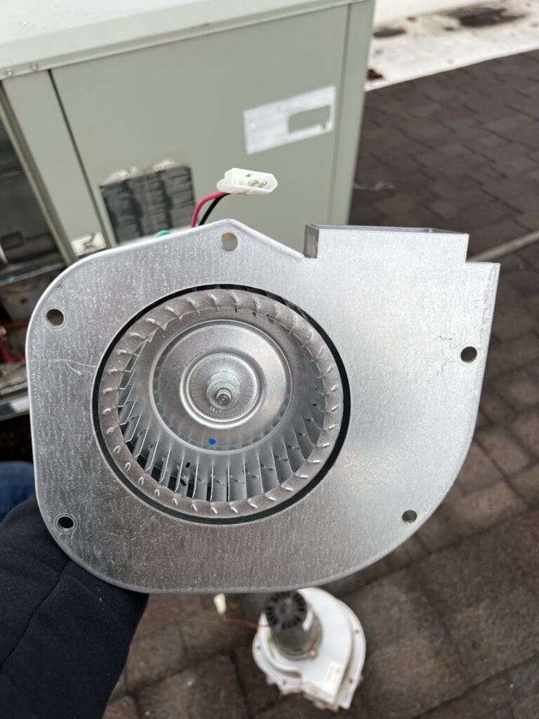 Service call for no heat in a commercial building. Found a bad inducer draft motor. This motor induces the pressure switch to start the system and then it pulls out unburned fumes and exhausts them. New motor got the system up and running so customer has heat.